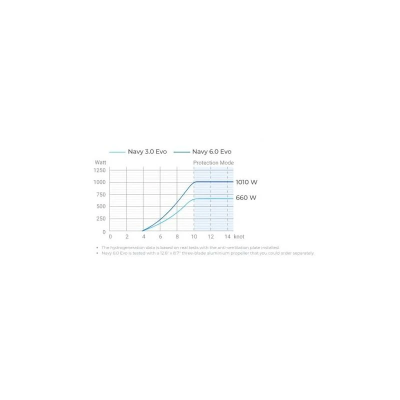 Les moteurs Navy Evo sont équipés d’une fonction de production hydroélectrique qui s’active lorsque l’hélice tourne à une vitesse comprise entre 4 et 10 nœuds, avec la batterie Epropulsion E-Series et le moteur à l’arrêt. Cette fonction permet de recharger la batterie lorsque vous naviguez à la voile, ce qui augmente l’autonomie du moteur pour une navigation plus longue, tout en étant plus économique et respectueuse de l’environnement.